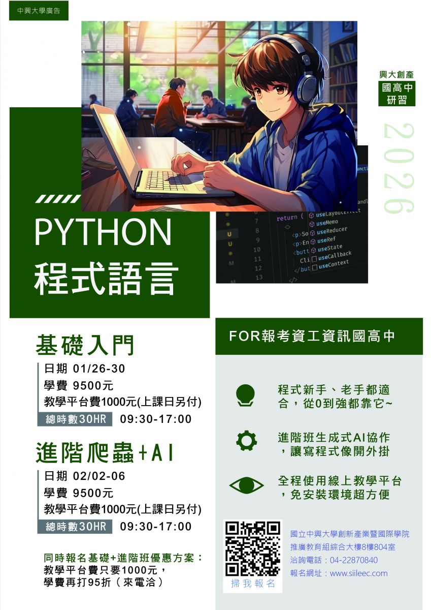 國立中興大學資訊科技第二專長學分班 程式設計科教師