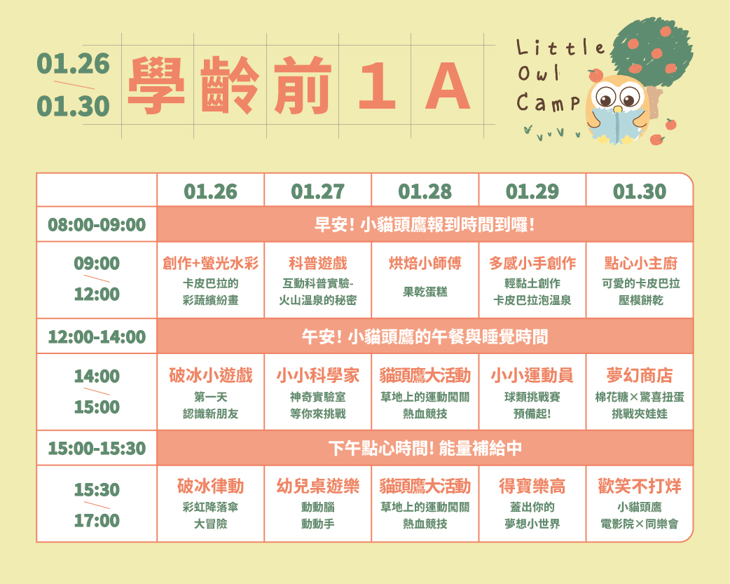 (2026冬)1/26-1/30學齡前第一梯A班3-6Y