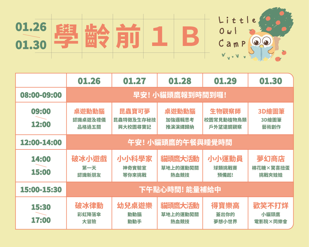 (2026冬)1/26-1/30學齡前第一梯B班3-6Y