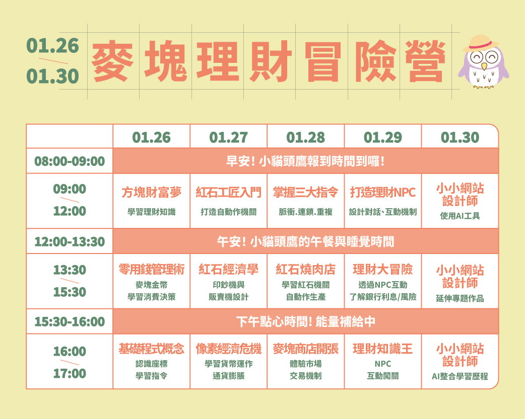 ▲營隊資訊:詳細課程內容、公告皆發佈在臉書粉絲專頁-小貓頭鷹冬/夏令營,歡迎按讚追蹤!
