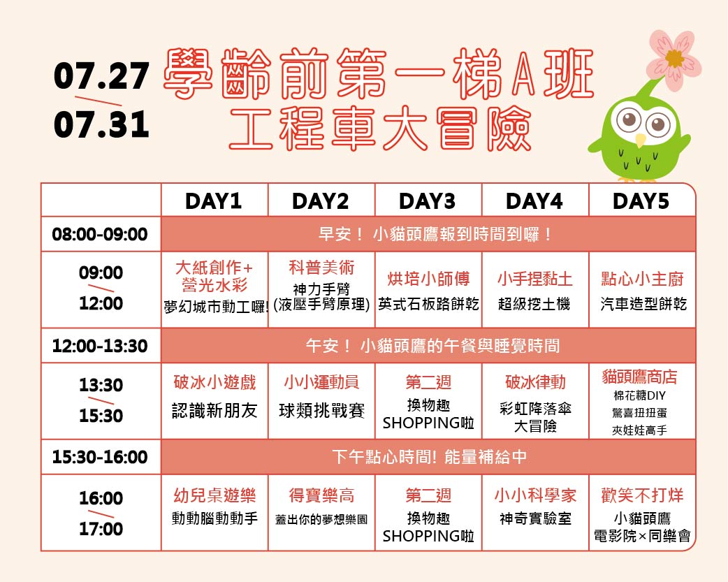 (2026夏)7/27-7/31學齡前第一梯A班3-6Y