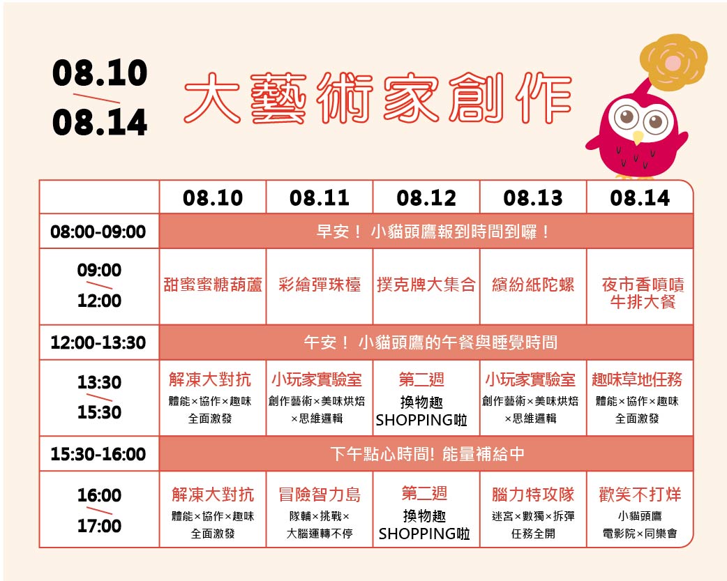▲營隊資訊:詳細課程內容、公告皆發佈在臉書粉絲專頁-小貓頭鷹冬/夏令營,歡迎按讚追蹤!